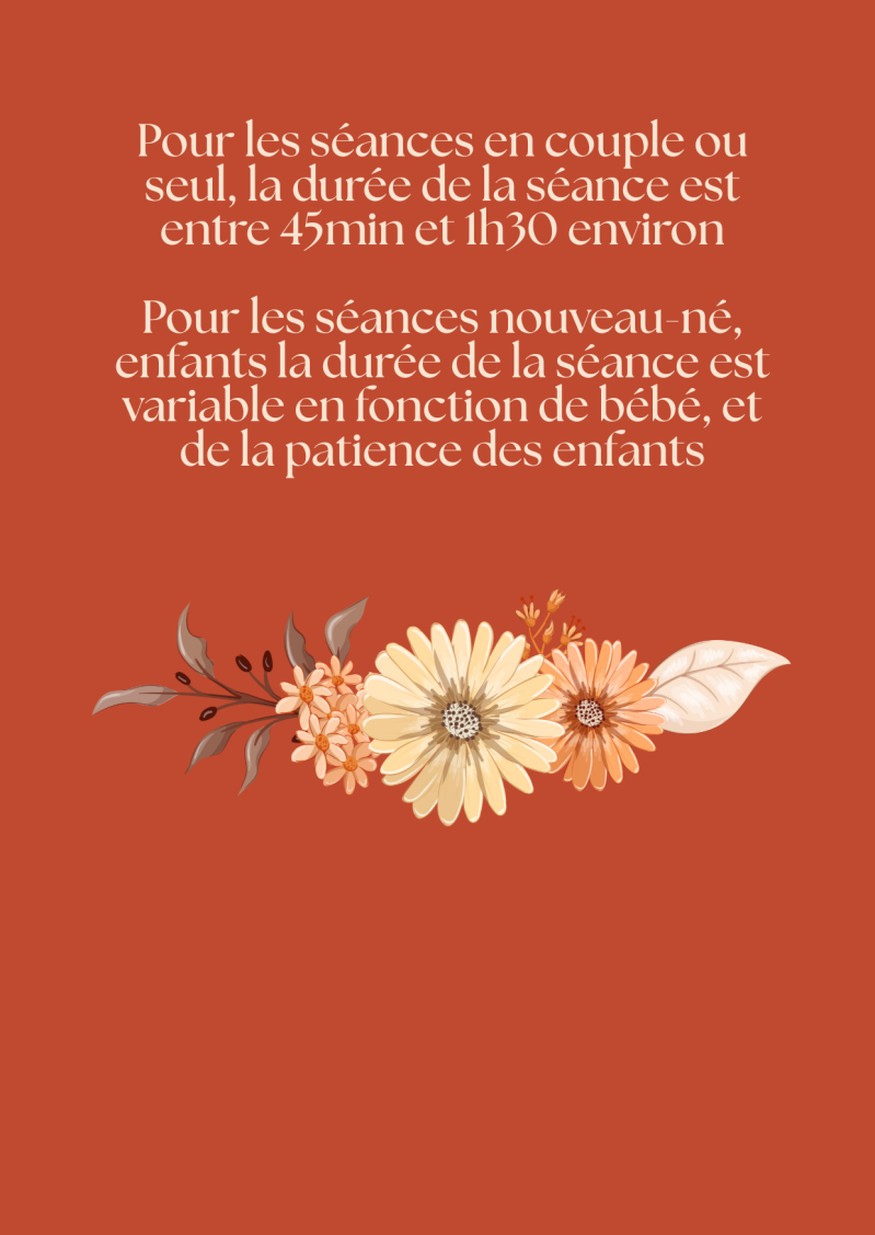 Un supplément peut être demandé en fonction du lieu de la séance et de la distance de déplacement đ